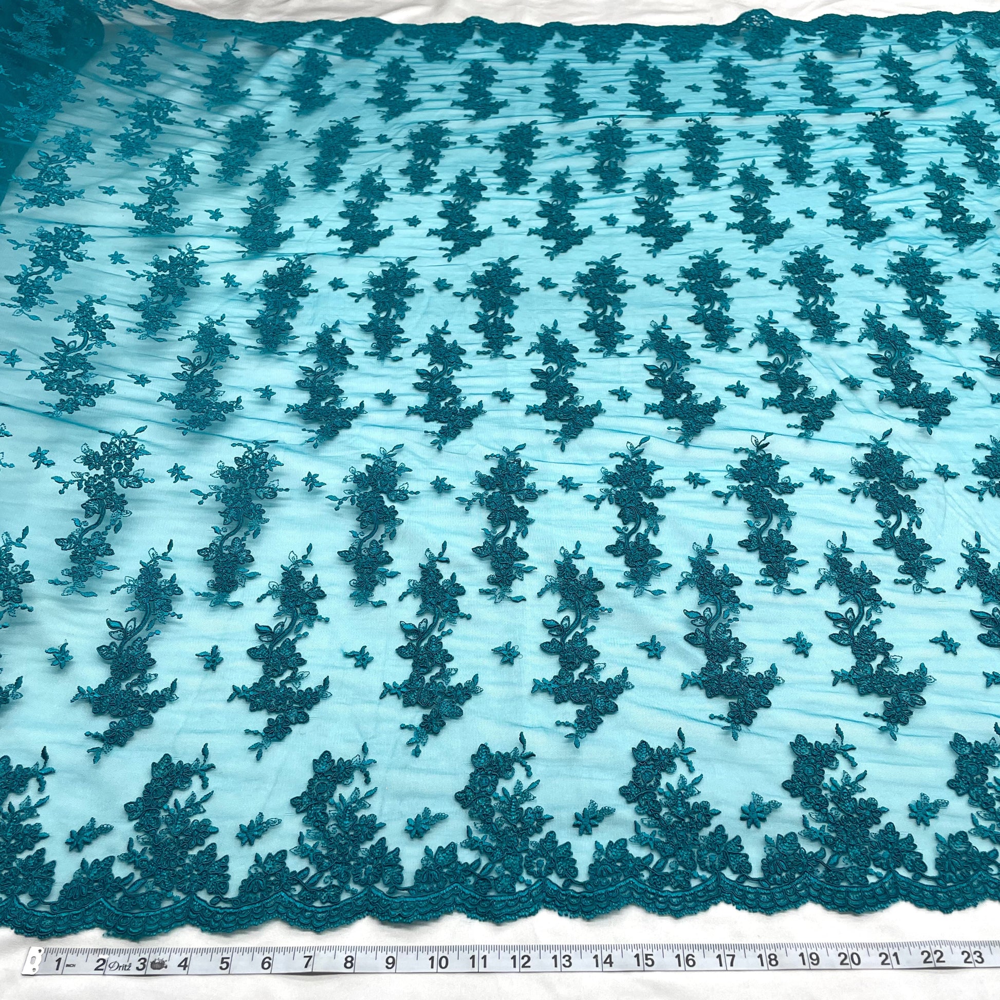 Corded Bridal Lace Fabric Embroidered on 100% Polyester Net Mesh | Lace USA - 96916W